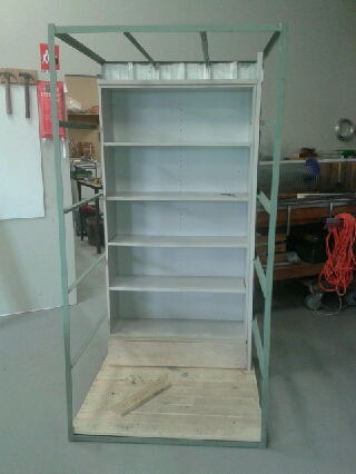 The first step was to take everything off the structure, replace deteriorated parts and place a spare set of shelves that Council had in storage.