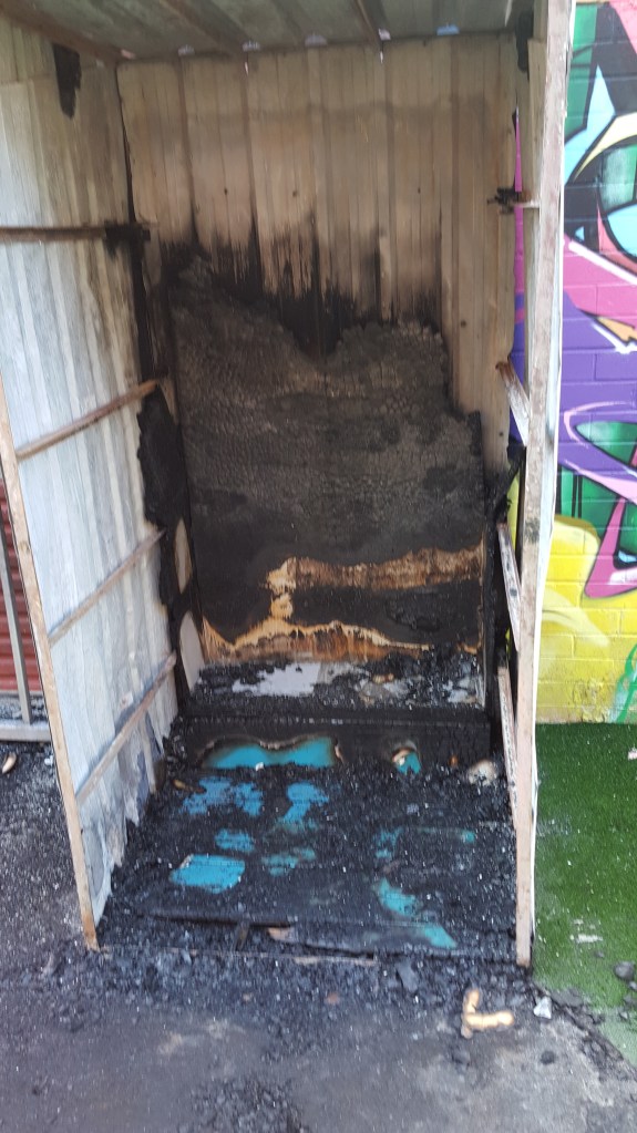 On one cold and windy August evening I saw a post on facebook that the little library was on fire. Perhaps a vandal, or someone seeking shelter from the winter winds had started a fire. It doesn’t matter…the library was badly damaged by fire.