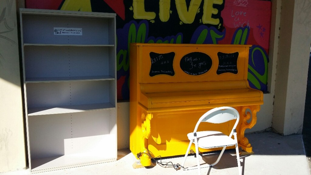 Next to the shelves was a yellow piano. But that’s another story for another time.