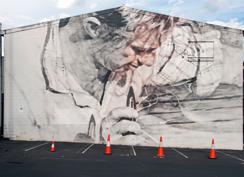 The staff member project managing the mural and laneway art work had an active interest in art and was also a talented visual artist. I imagine the project gave her an opportunity to work with one of her passions. She had engaged an internationally renowned mural artist for the project – Guido Van Heltern.